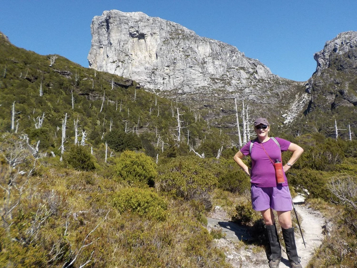 Reader Kerry Forrest at Frenchman’s Cap in favourite hiking clothes. Kerry says, “My advice is to find what is comfortable and works - then stick with it. I keep my walking clothes until they wear out or are so thin or holey that they can't be worn (or trusted). In fact, I've replaced my boots more often than my outfits. I prefer to walk in shorts with gaiters and a merino t-shirt, adding and removing layers as needed.” (Image Credit: Kerry Forrest).