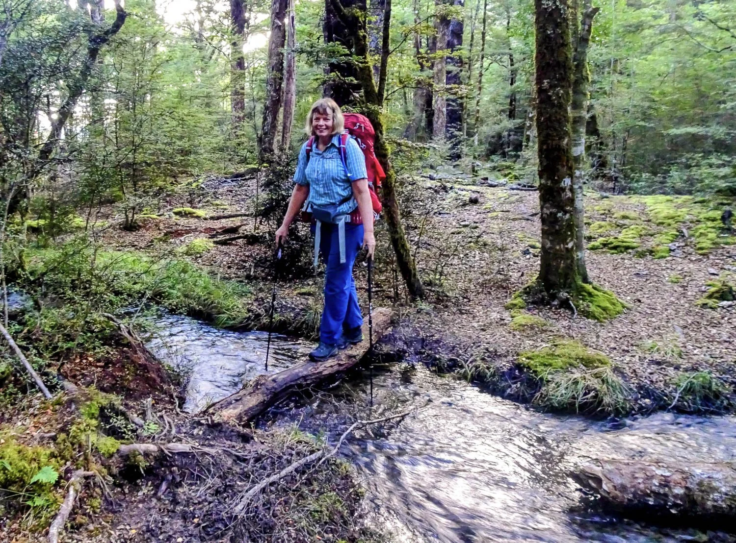 Hilary writes of her polypropylene: “At the age of 64, I hope to pack in lots of walks over the next decade. Gear? Well, I pulled out the ancient thermals, decades old, and wore them under my shorts and jacket as required. They were old, pilled, stained, and they were brilliant. On this day, I also wore long thermal pants for the predawn start from Oturere Hut (see the torch around my neck), but easily removed them as I warmed up. The sleeves on the thermals can be pulled up and down as required, and I don't have to worry about tearing from branches and rocks, as I would with my precious merino. (Image Credit: Hilary)