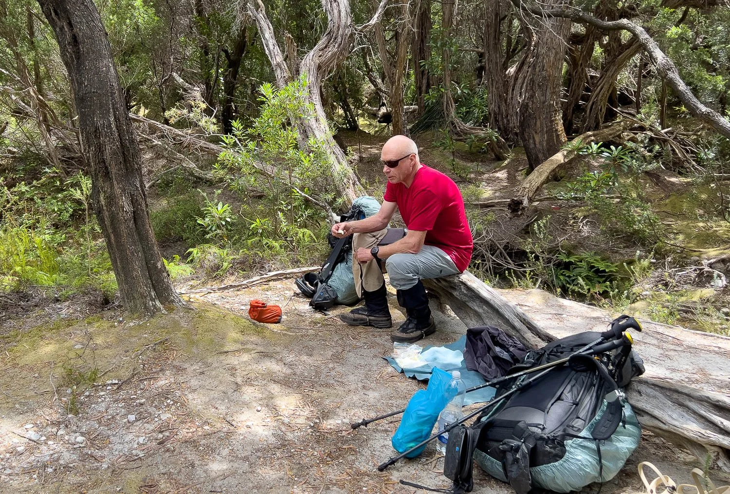 Zip off pants zipped off on a mild, leech-free day on the South Coast track.