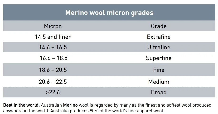 This is a shame because Australian merino wool base layers are now so fine and well-processed that most people no longer find them itchy. Here is a table: