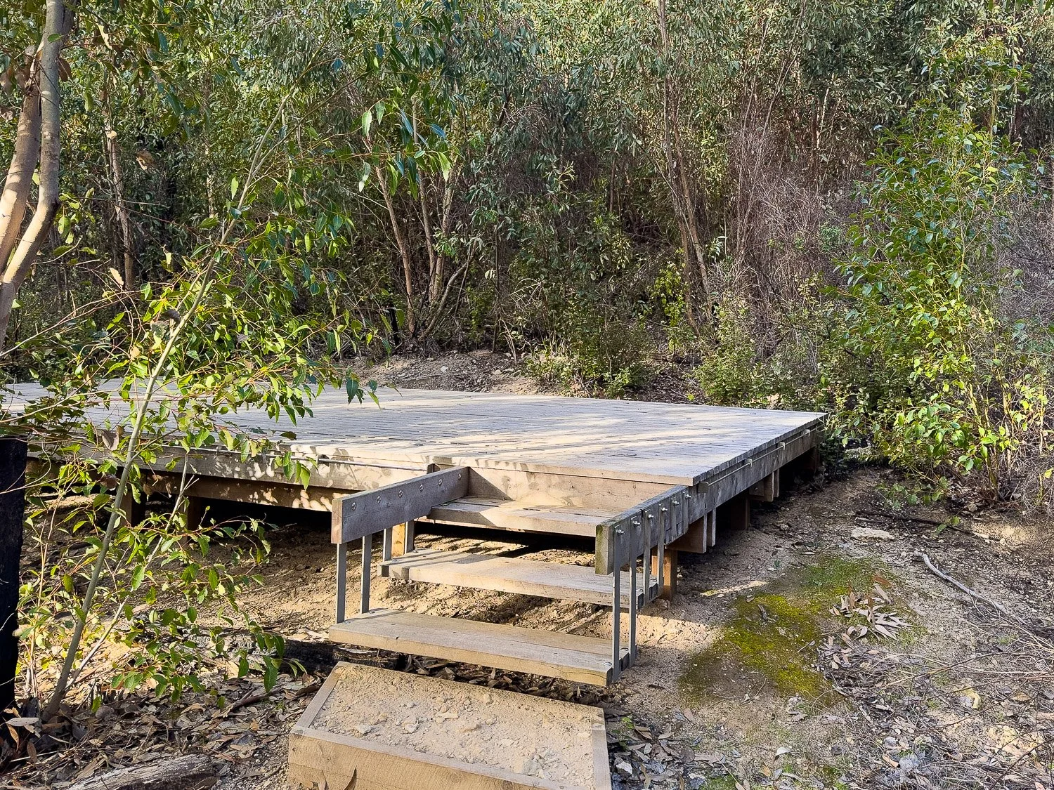 You could choose to stay at Rocky River Campground halfway, and view the platypus in the evening. However, if you feel that you need to split this day because of distance, subsequent days will likely be too demanding for you despite the shorter distances because track surfaces are far more challenging.