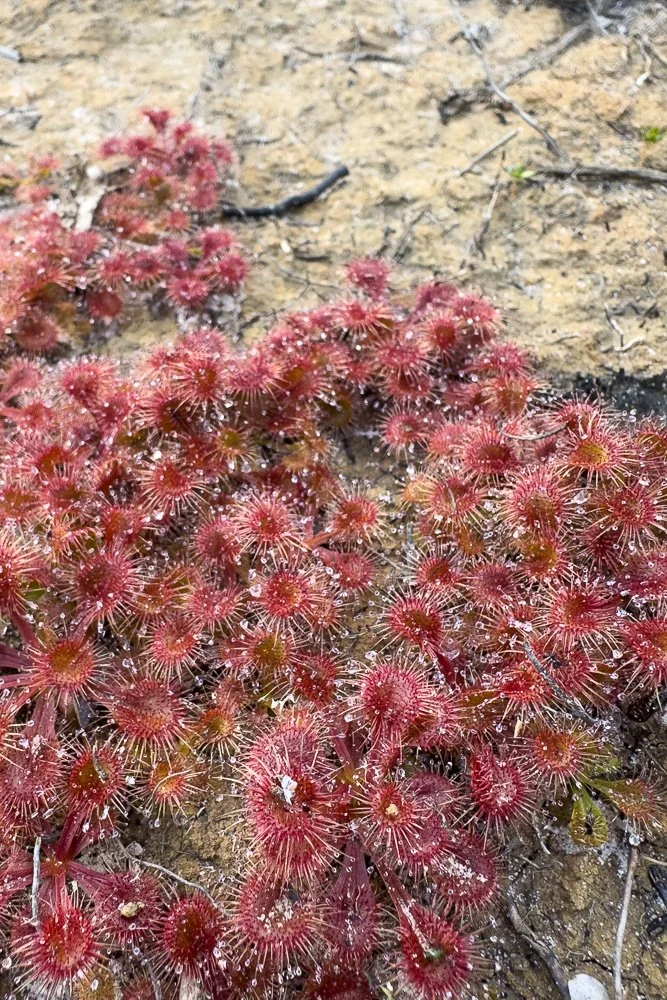 Schmutz’s sundew (Drosera schmutzii) is found only on Kangaroo Island; it is an amazing thought, really: the only place on the entire planet. The sticky droplets trap and kill insects, which then fall to the ground below the plant to provide extra nutrients.