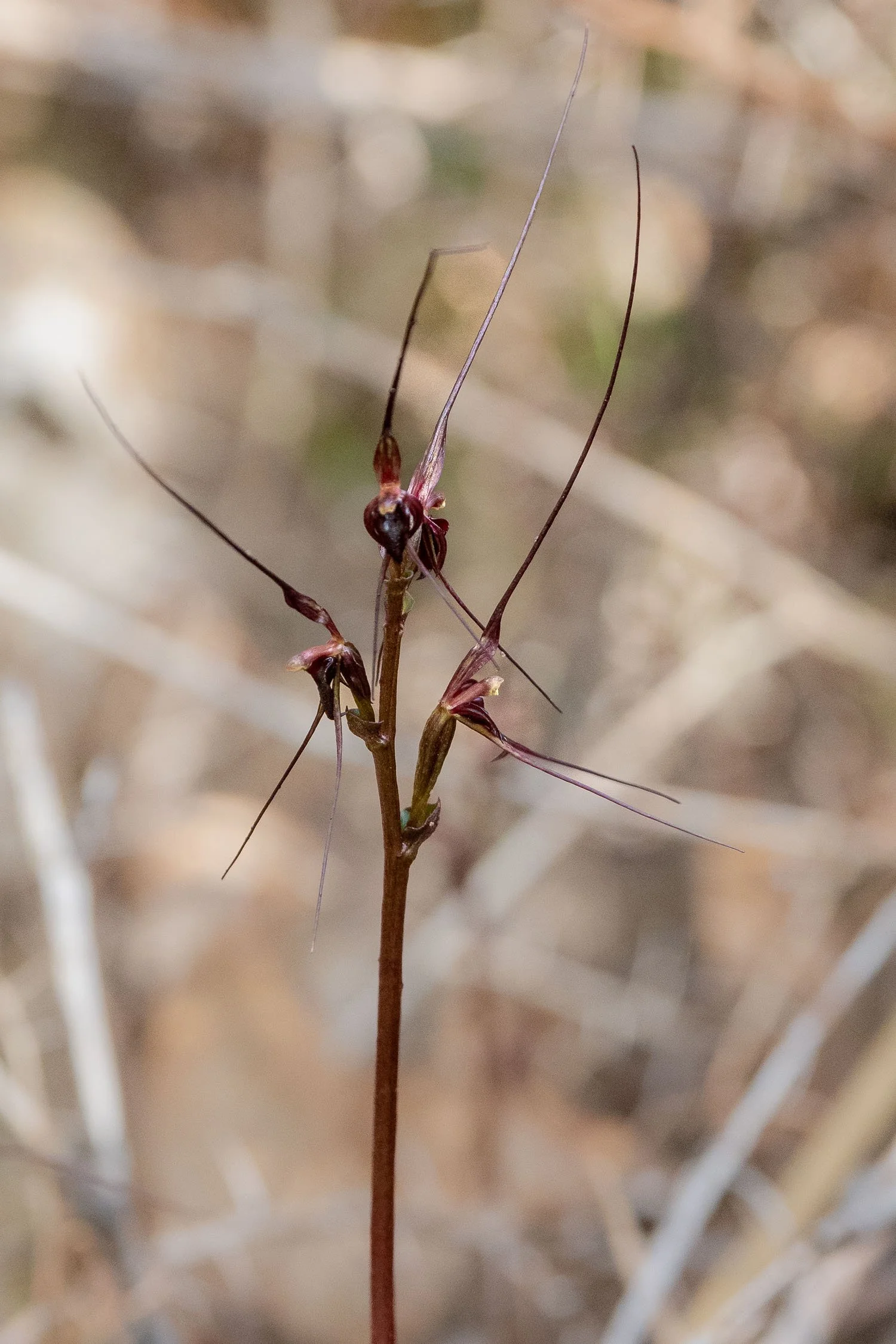 Mayfly orchids (Acianthus caudatus) in this section too: they usually grow in dappled shade and their colour makes them tricky to spot.