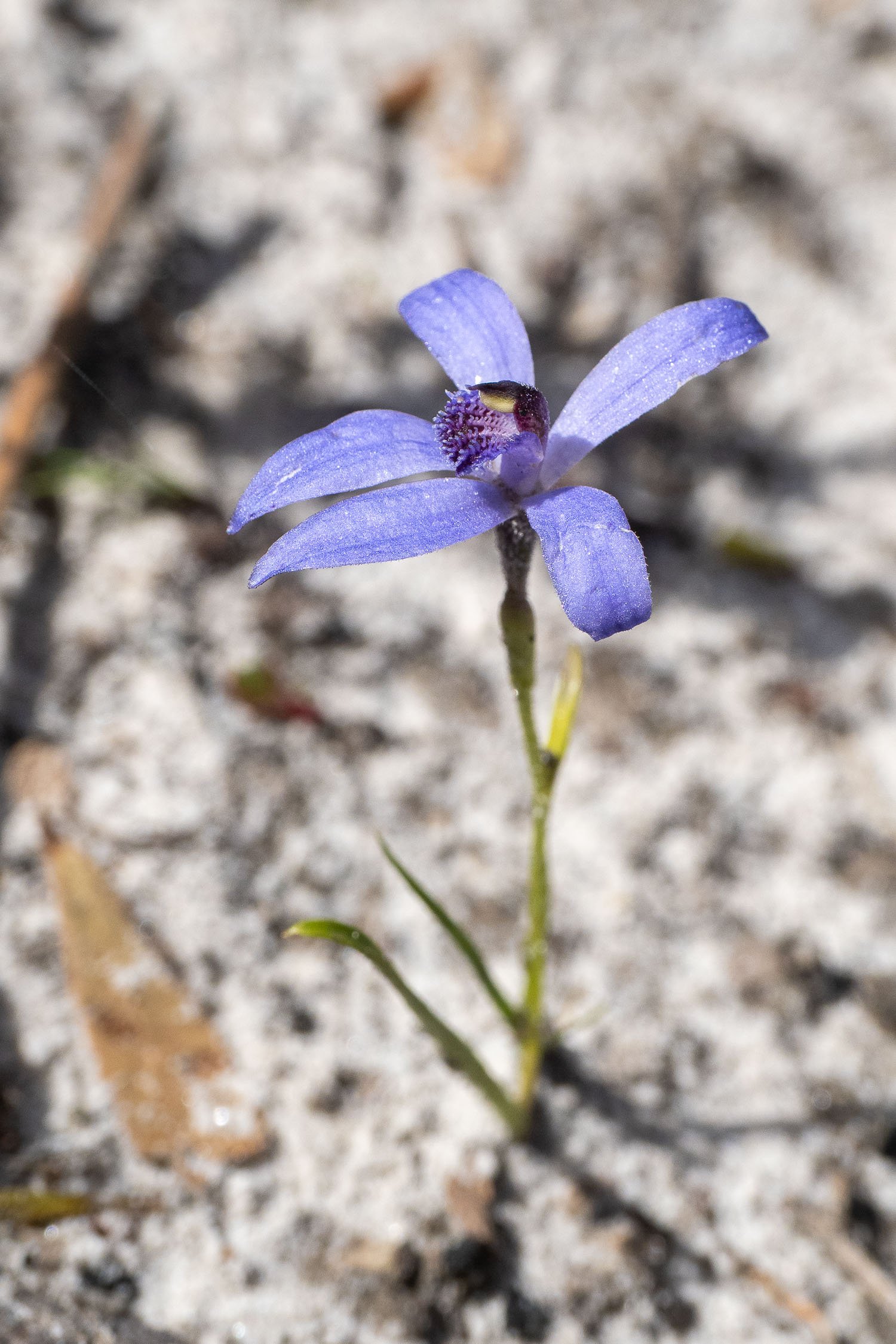 Blue Fairy Orchid (Pheladenia deformis); they grow only along a few kilometres of track today and nowhere else that we could see.