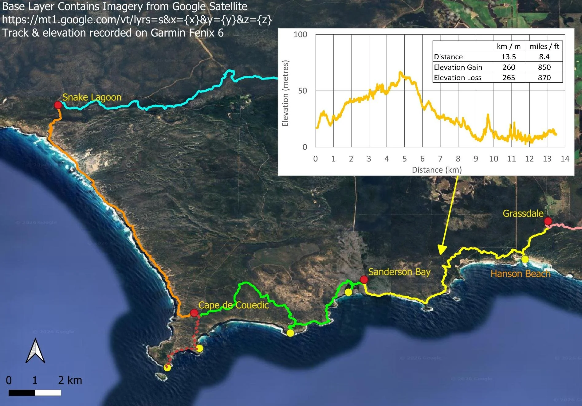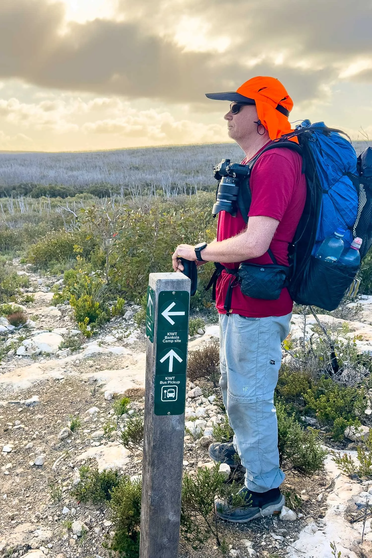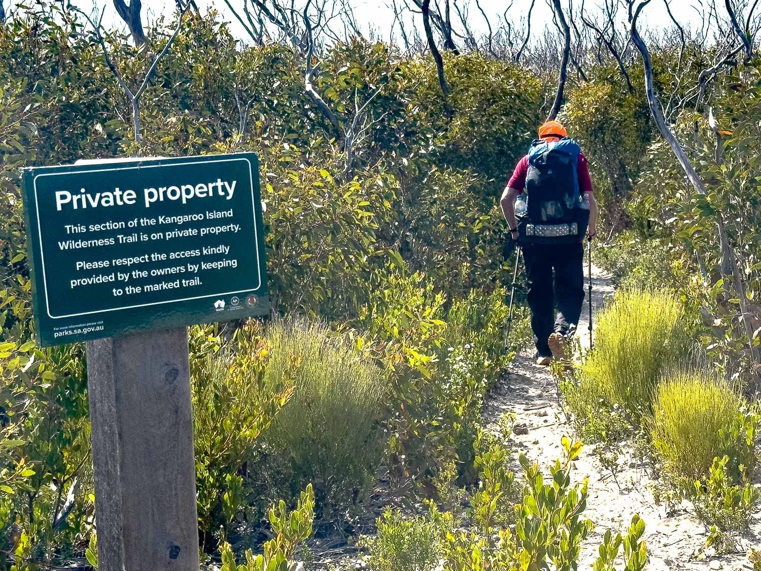 Leaving Banksia Hut. You can see the Sanderson Fire Access Track in the background, which is used by tour group companies shuttling clients hiking the KIWT as a series of day walks.