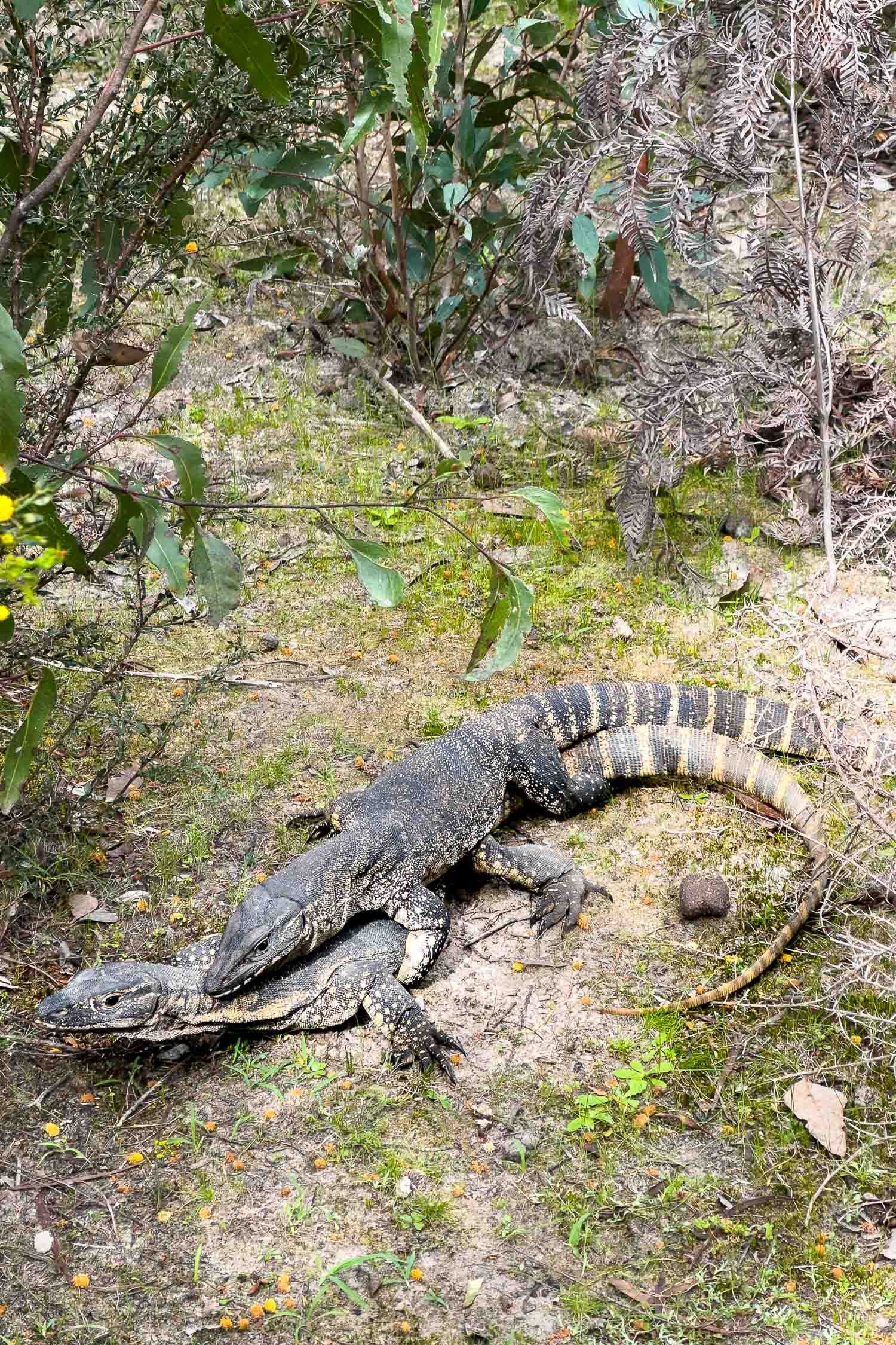 Rosenberg’s Goannas are accustomed to hikers and continue sunning themselves as you pass. They are the apex ground predator on the island so not much fazes them! They’re big, but completely harmless to us humans.