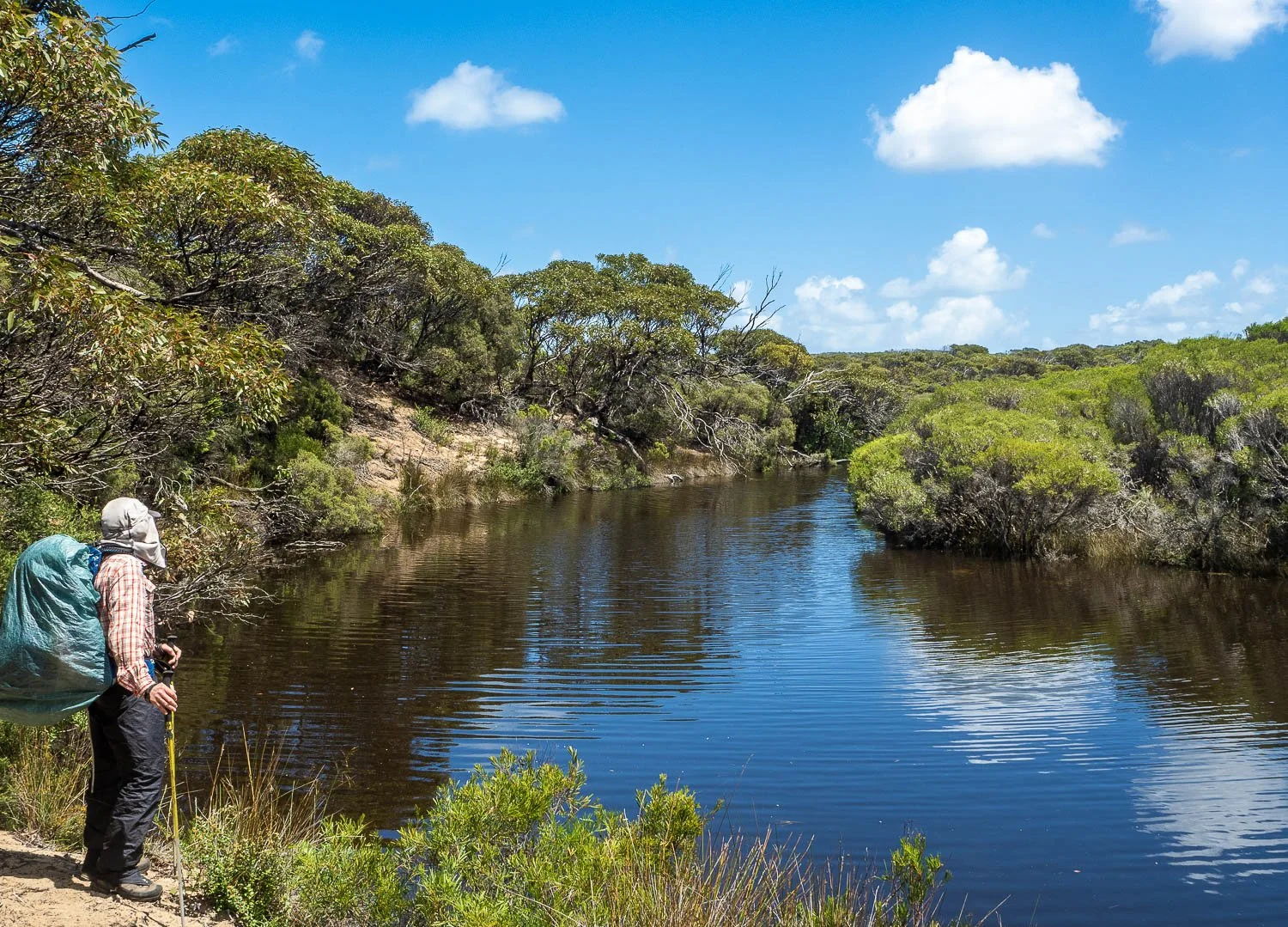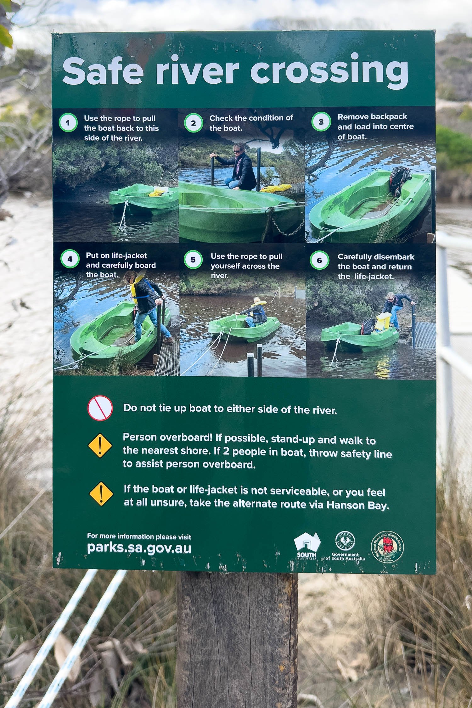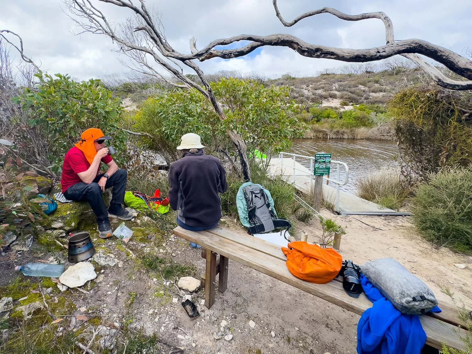 The new piers mean you can cross without getting your feet wet. It’s now ridiculously narrow and a bit of fun, much less daunting and no need for special strategies as on our more exciting crossings on the South Coast Track and the Bibbulmun!