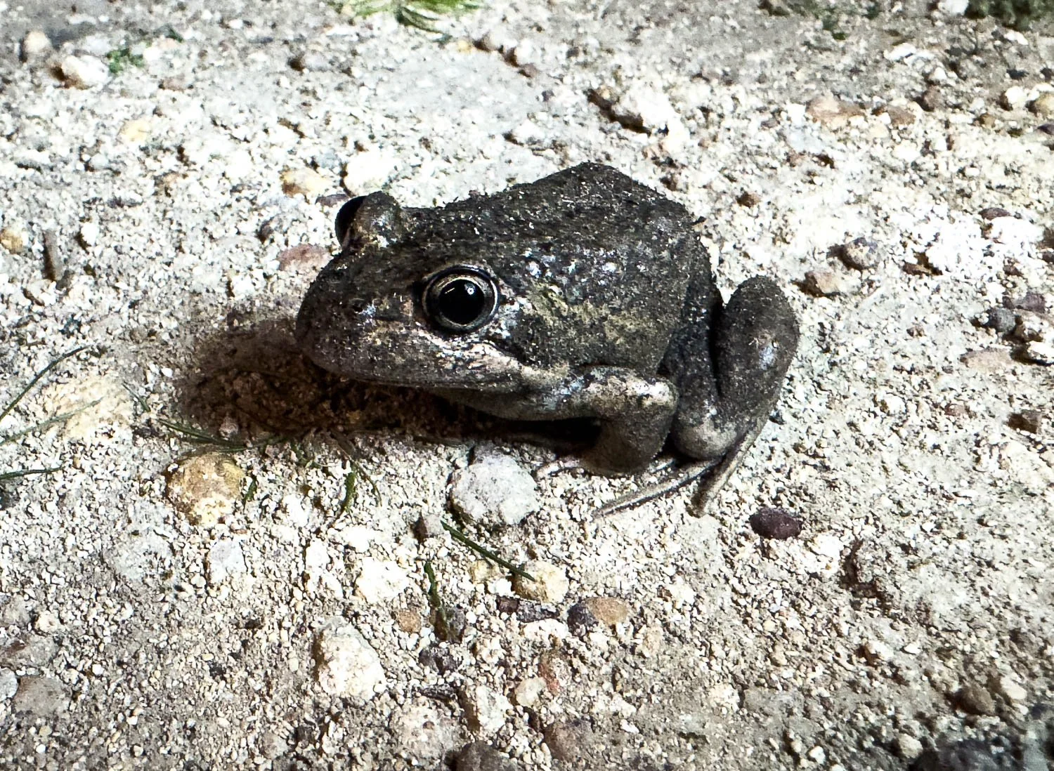 A Pobblebonk frog (Limnodynastes dumerii) — you’ll hear their distinctive call! — emerges to inspect us after the rain.