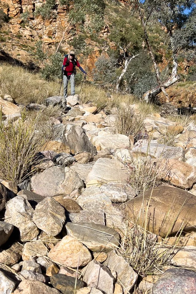 Only a couple more kilometres along the valley to Mulga Camp, and still easy underfoot. You’ll likely make good time.
