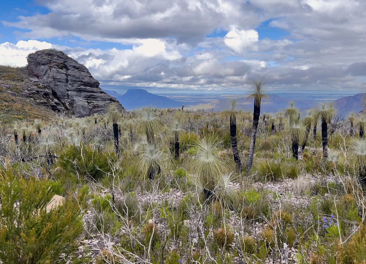 There are approximately 1500 different plant species in the Stirling Range, about 90 of which occur nowhere else. For botanists, every peak is noticeably different, with rare species occuring only on individual ones: I couldn’t believe the variation in terrain and vegetation on adjacent peaks. Don’t think that if you’ve seen one you’ve seen them all, as is the case in less speciated mountain ranges. Climb as many as your timetable permits!